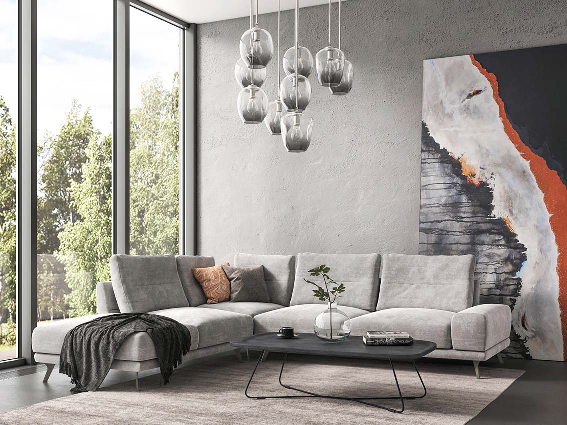 Диван угловой в светло-серой ткани с раздвижными спинками Goodman SF-391