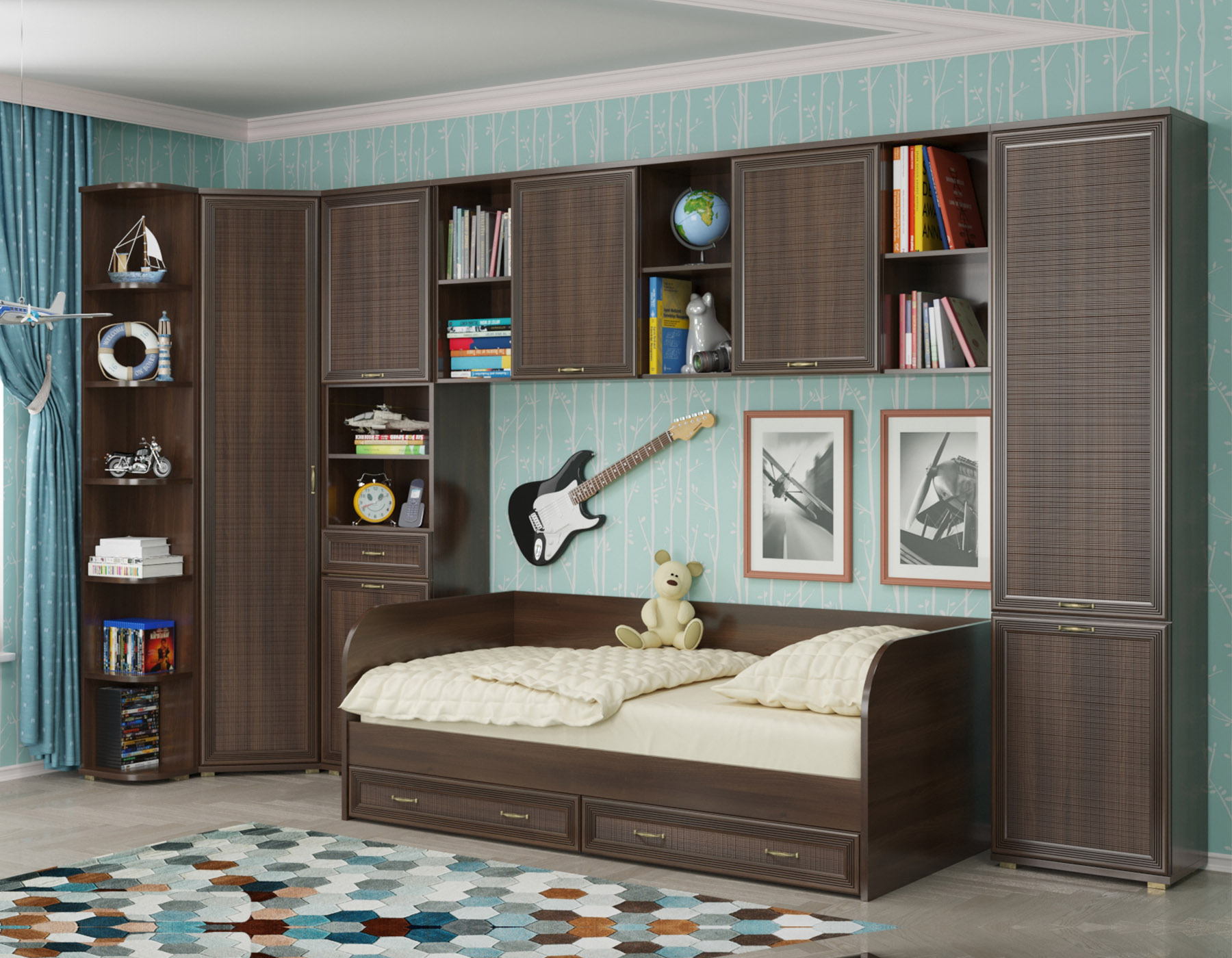 Коллекция включает в себя более 60-ти оригинальных модулей, созданная с их помощью композиция отлично впишется в любое помещение. Программа «Карина» позволит создать уют и гармонию в детскую или подростковую комнату.