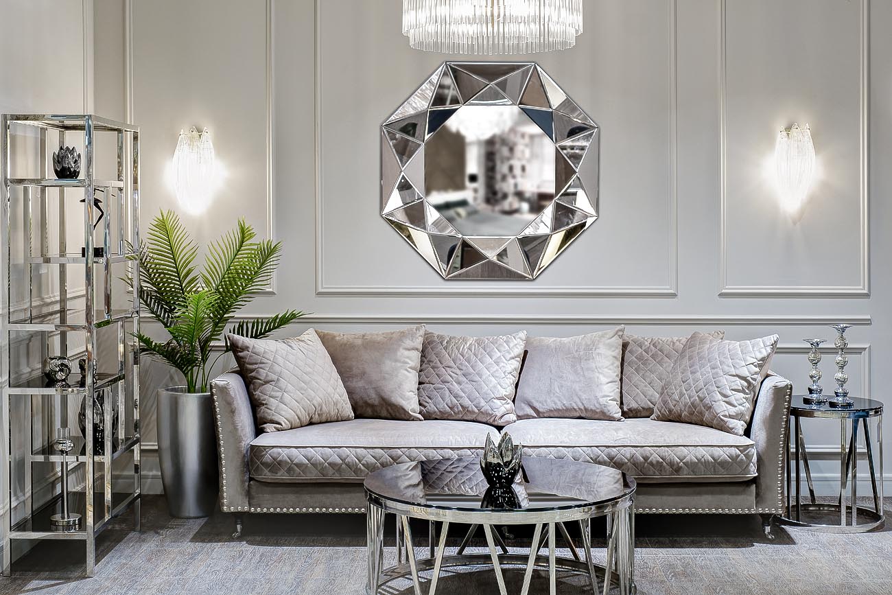 Дизайнерское зеркало в объемной рамепривносит в обстановку дух творческой свободы и богемности. Зеркальные элементы рамы, расположенные под различными углами, отражают свет подобно граням драгоценного камня. Дополнив интерьер свечами и дизайнерскими светильниками вы сделаете дом просто неотразимым!
