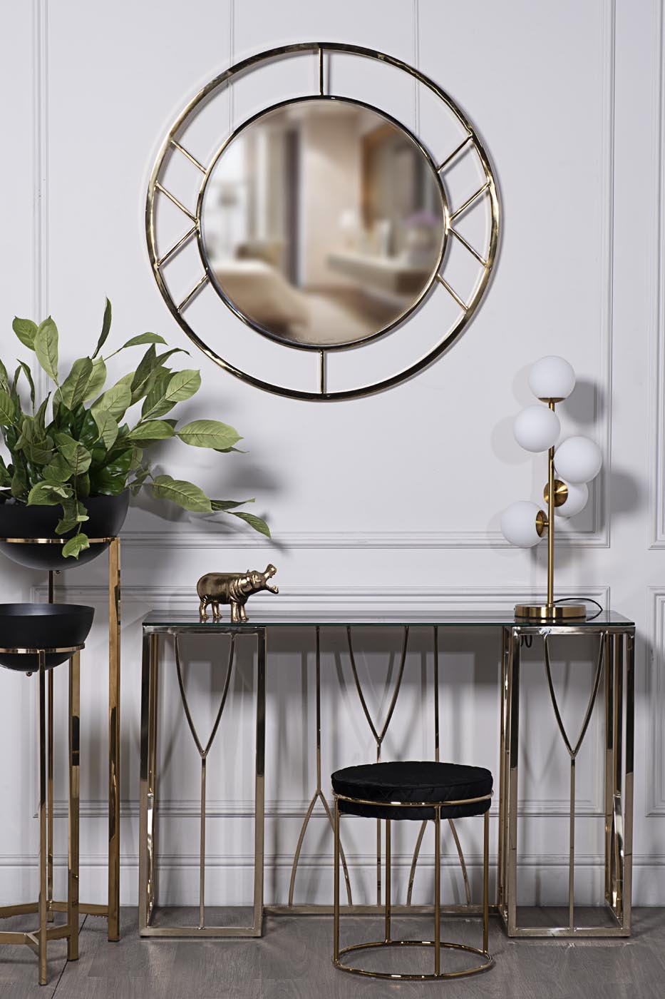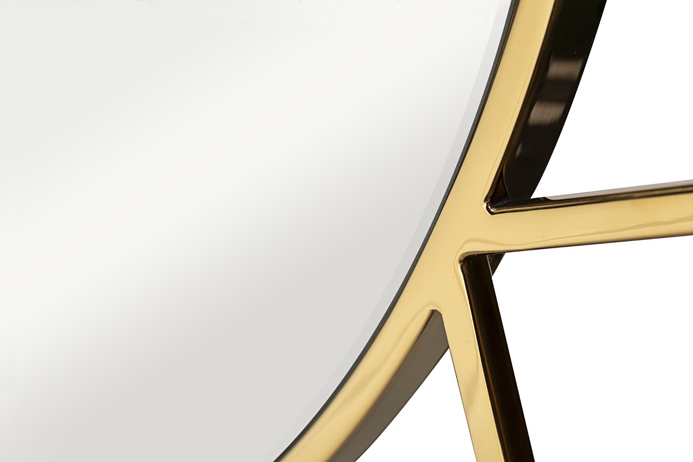 Зеркало в золотой раме выглядит стильно и концептуально.