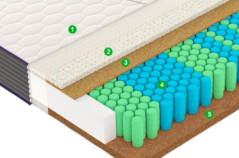 Слой Latex SoftGel с эффектом терморегуляции, жёсткость кокосовой койры и точечно подстраивающийся под вес и изгибы тела, блок независимых пружин – лучшее профилактическое решение для формирования правильной осанки у детей. Перевернув матрас, поменяйте его степень жёсткости для подросшего ребёнка.