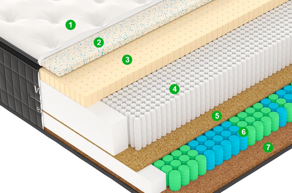 В основе верхнего комфортного слоя матраса – классический латекс с эффектом терморегуляции Latex SoftGel. Входящие в его состав микрогранулы охлаждающего геля регулируют температуру поверхности для самого крепкого сна.