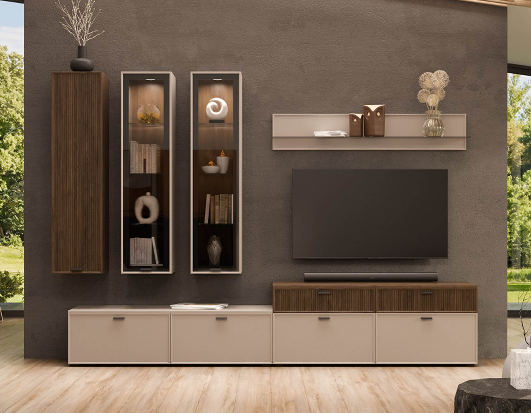 - Функциональность: шкафы, витрины, ТВ-тумба и полки
