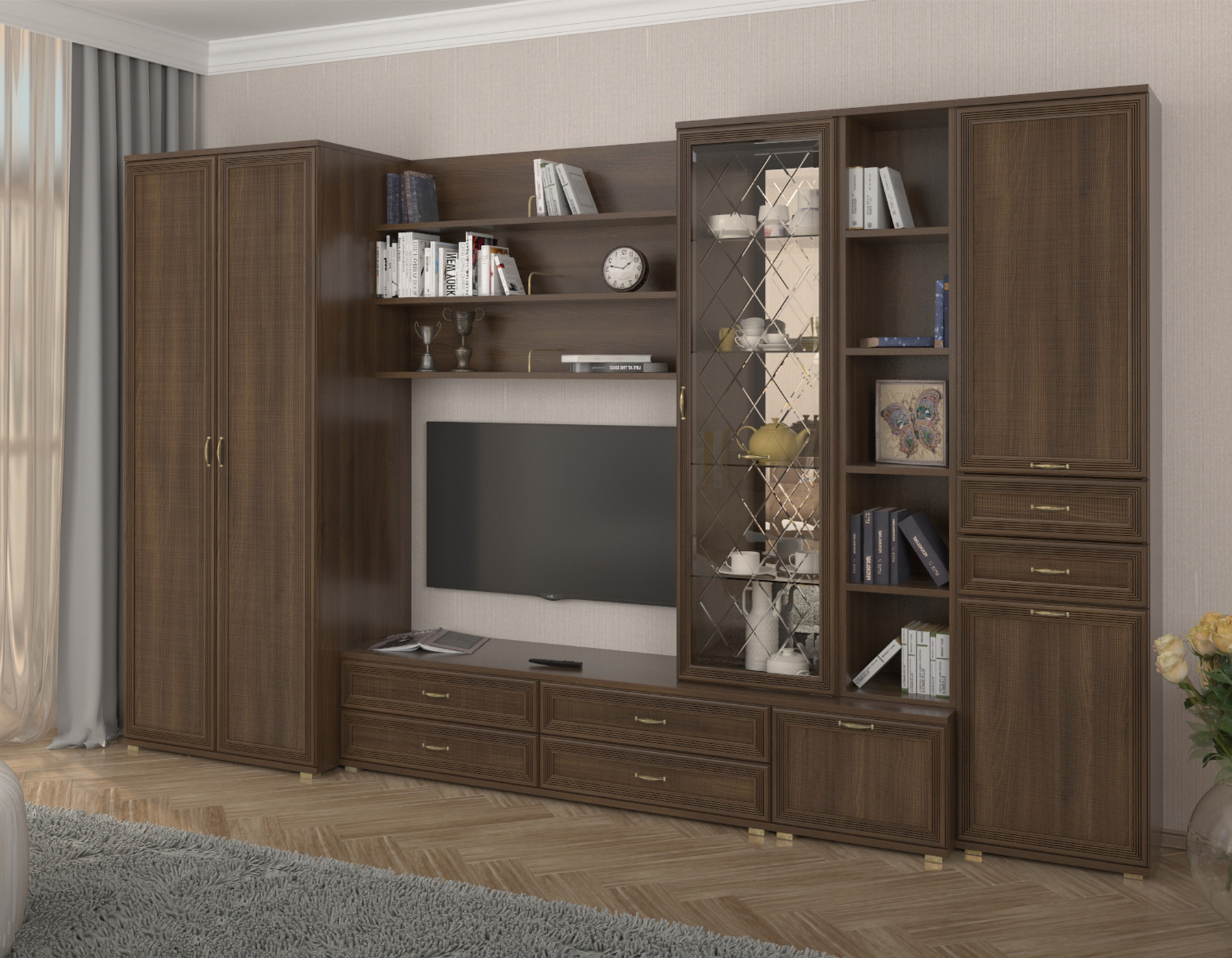 Если классика кажется вам слишком строгой, а современный стиль — простым, обратите внимание на их объединение в серии гостиных «Карина», где сочетаются классическая элегантность, изысканность и функциональность, присущая современным стилям.