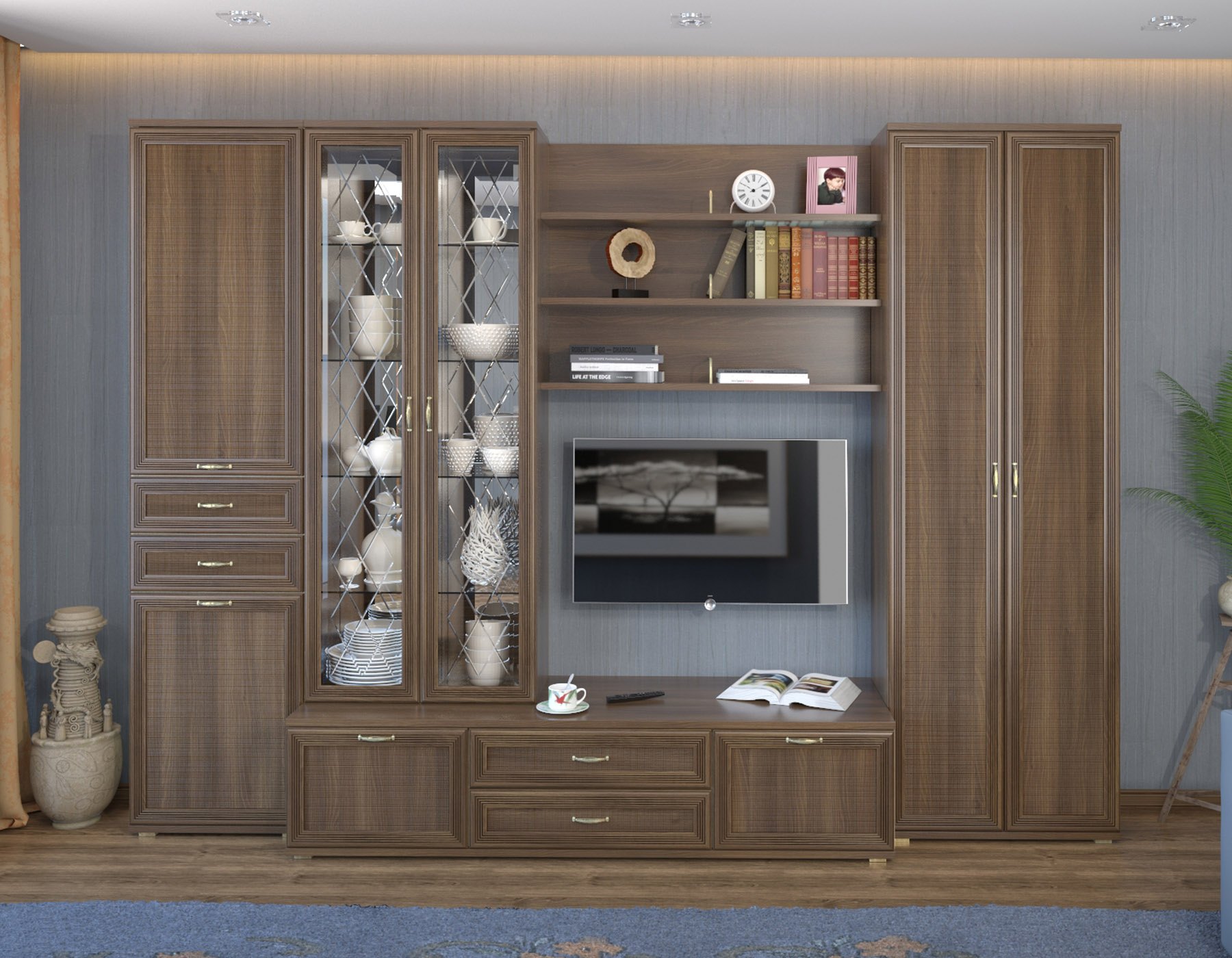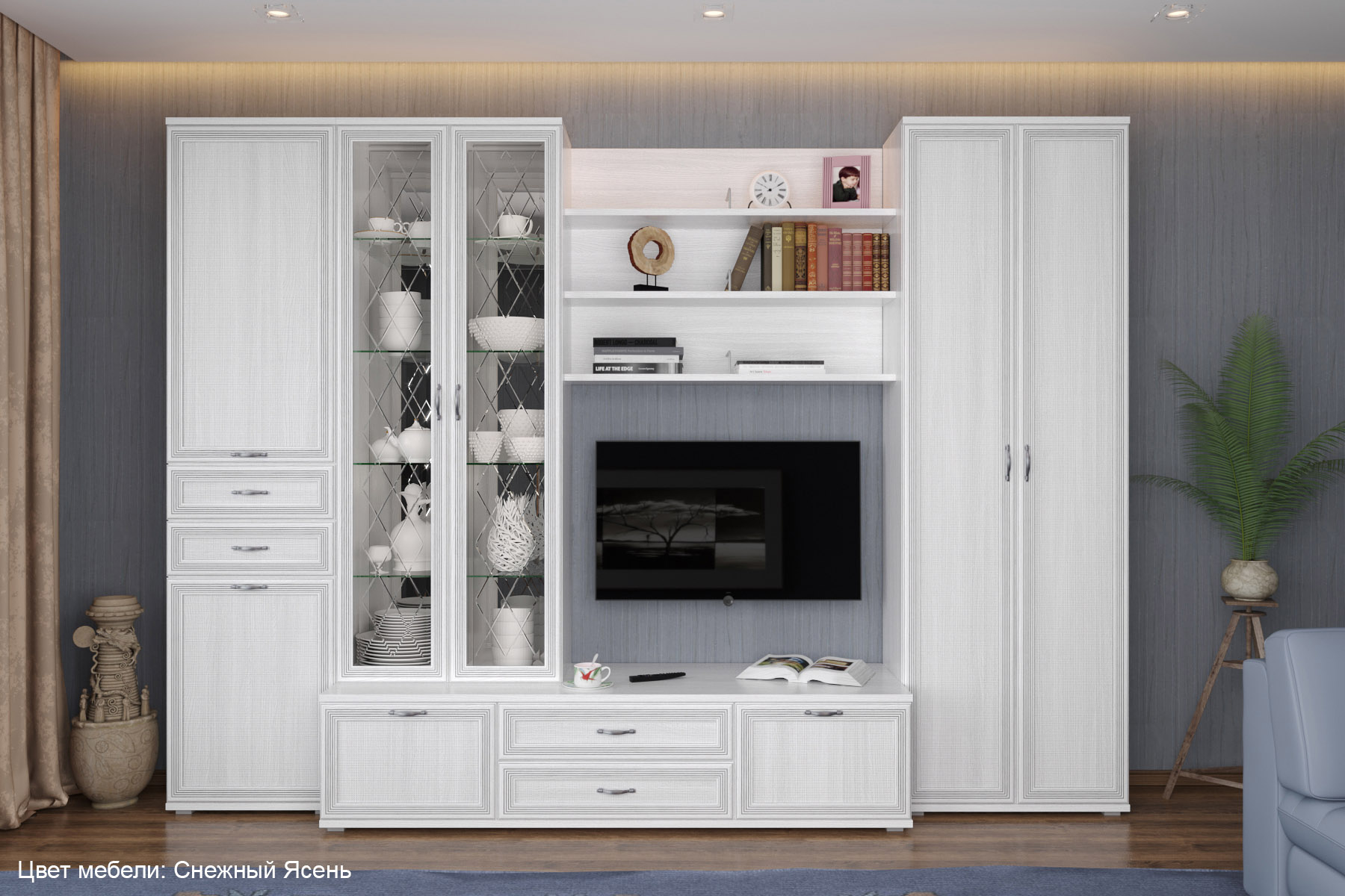 Стильный набор универсальных модулей гостиной разработан специально для нестандартных комнат. Ничего лишнего , только нужное и необходимое для жизни.
