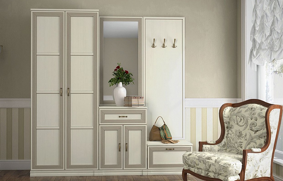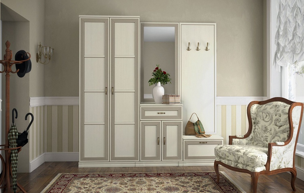 Прихожая Адажио 1.2 выступает образцом сдержанности и изящества. Мебель выполнена в спокойных тонах без добавления ярких акцентов. Шкафы отличаются вместительностью, также добавлены вешалки для верхней одежды.