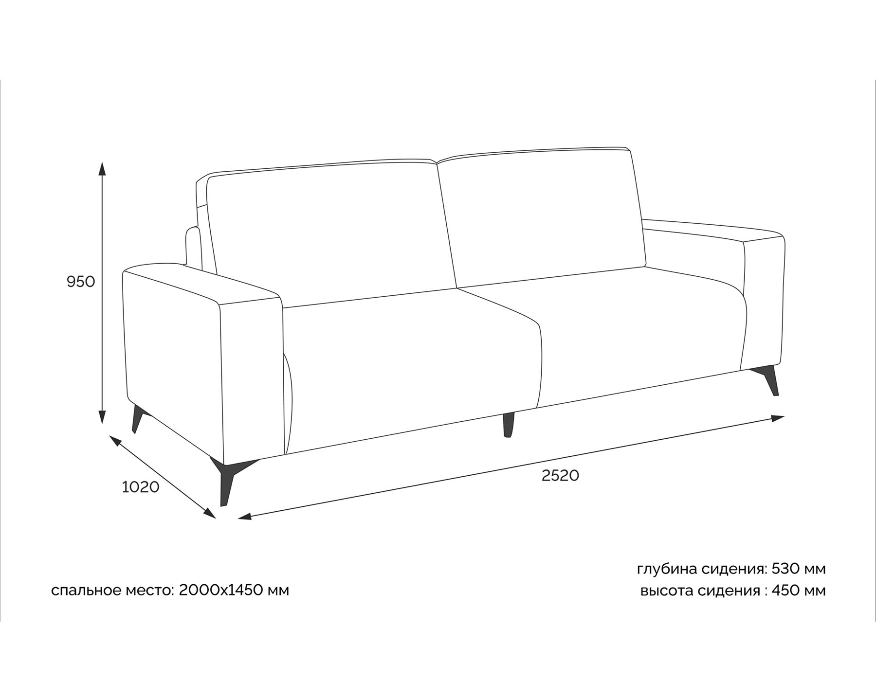 Габаритные размеры дивана составляют 2520х950х1020 мм (длина, высота, глубина), что позволяет комфортно разместить его в различных помещениях.