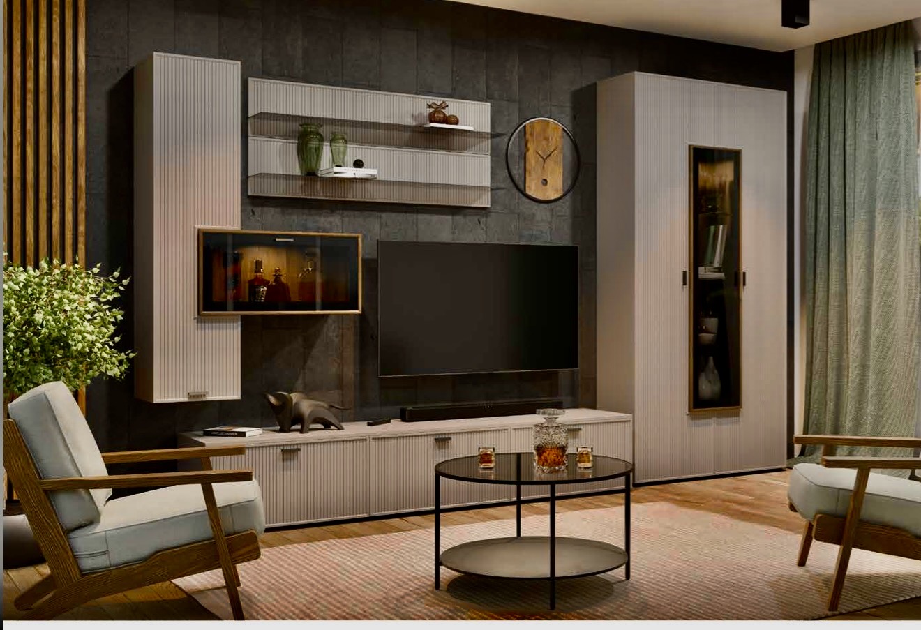 - Гостиная: база для арт-объектов и акцентных кресел.