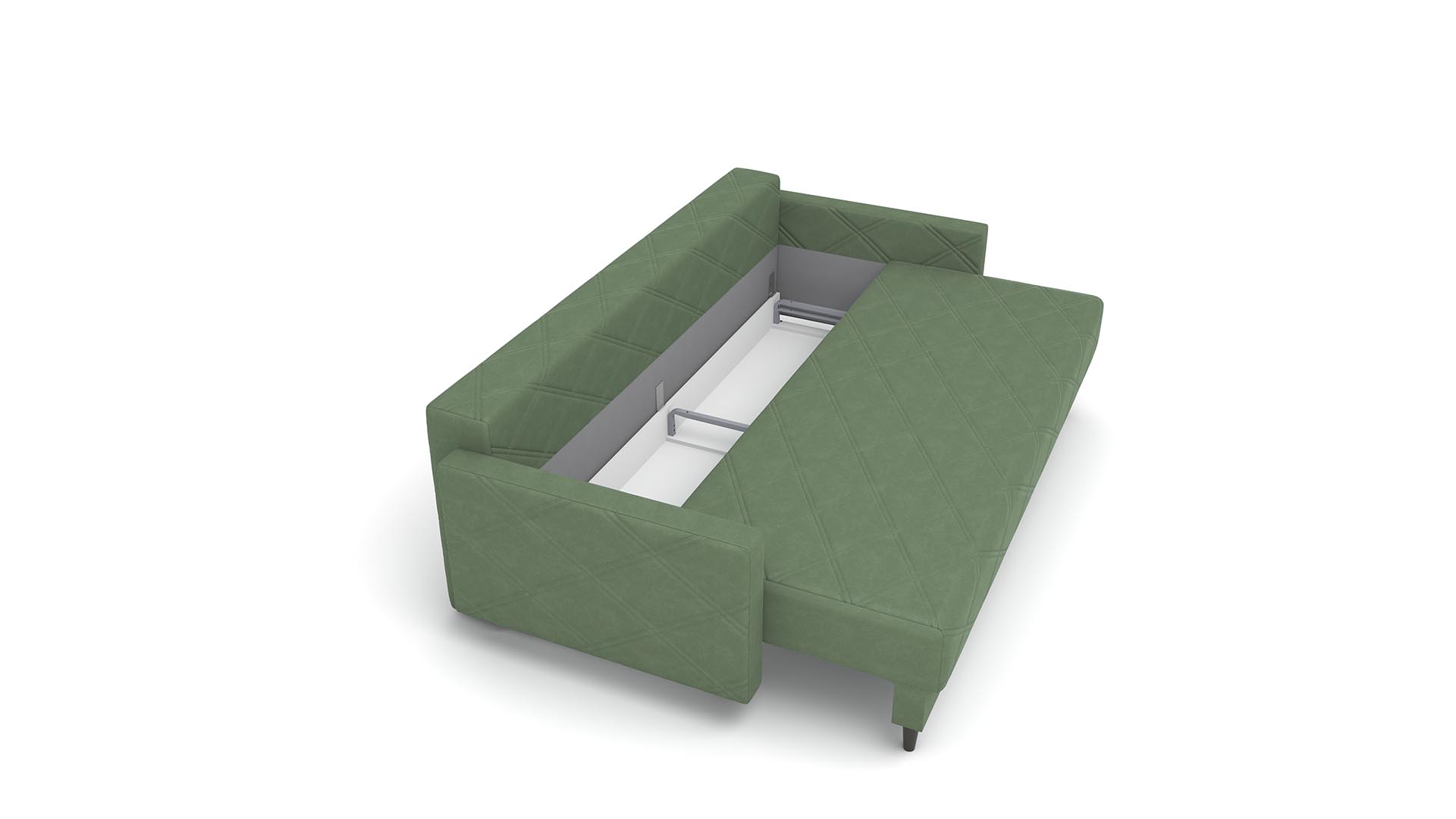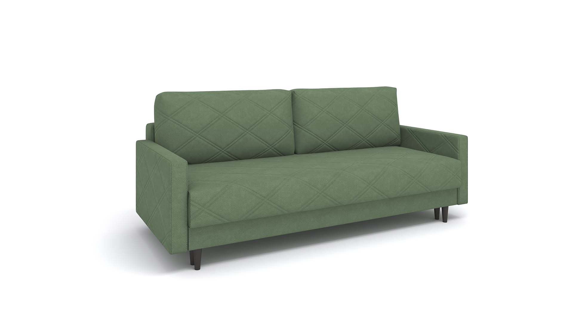 - Стильный дизайн — изысканная ромбовидная стежка и благородный оливковый цвет обивки;